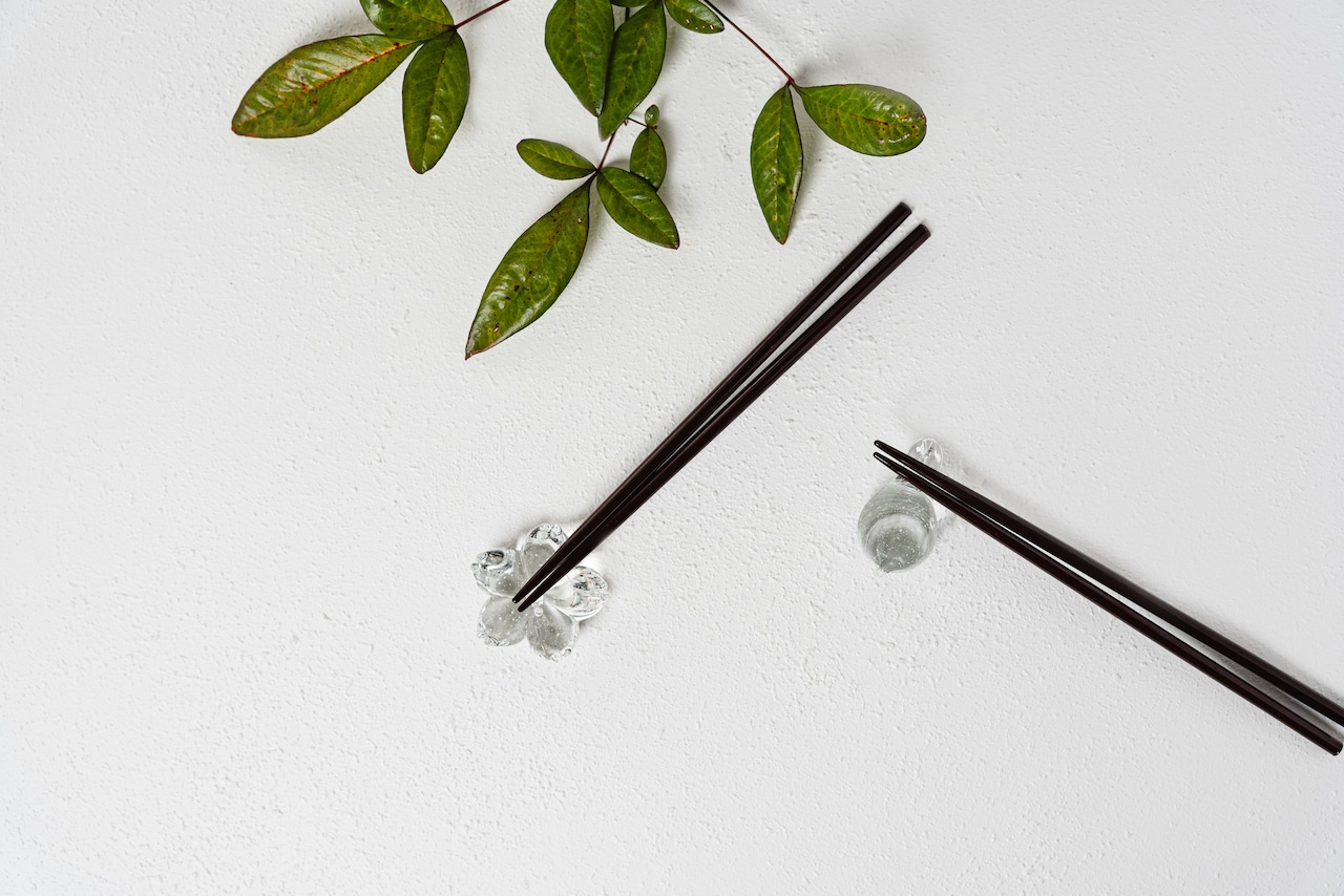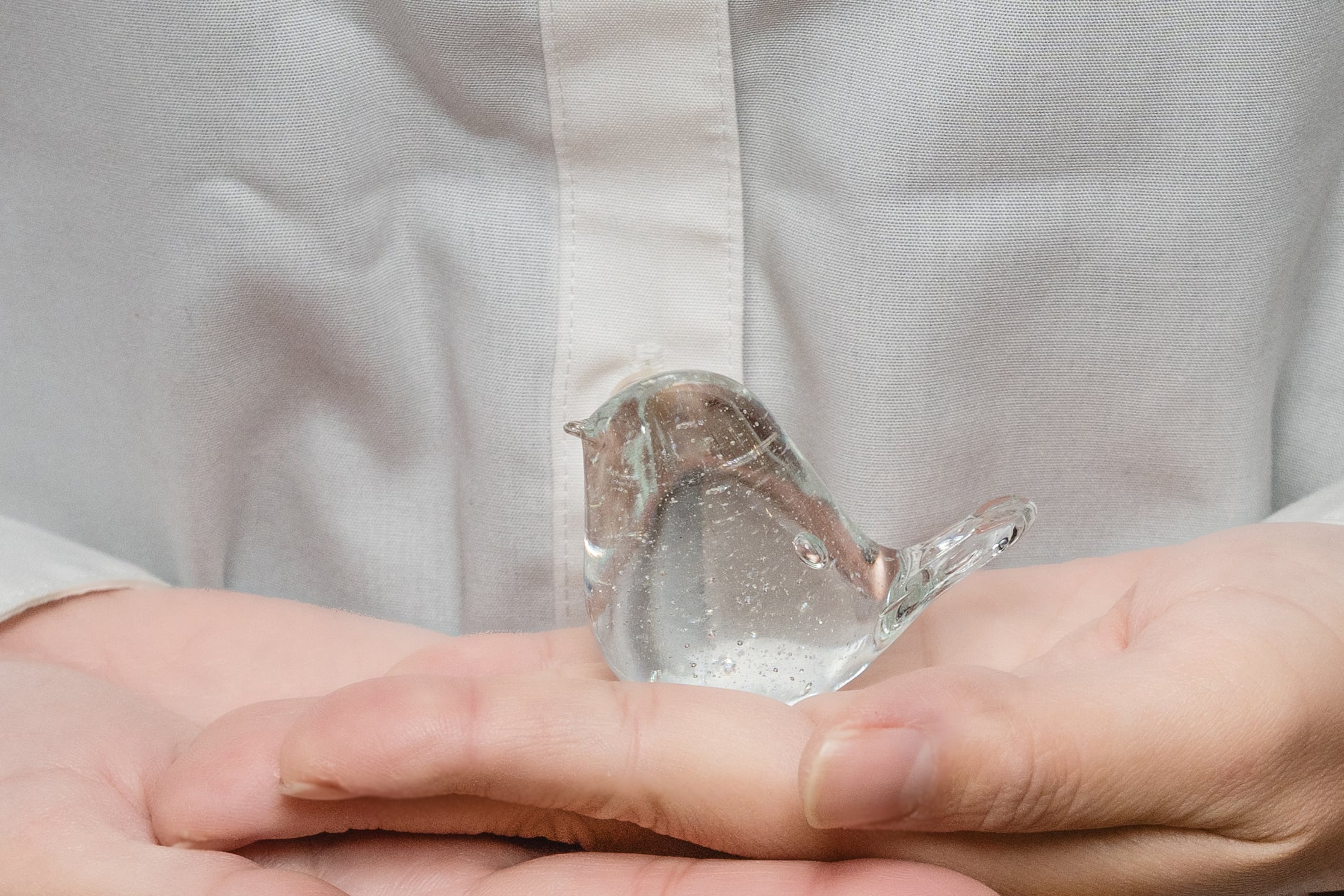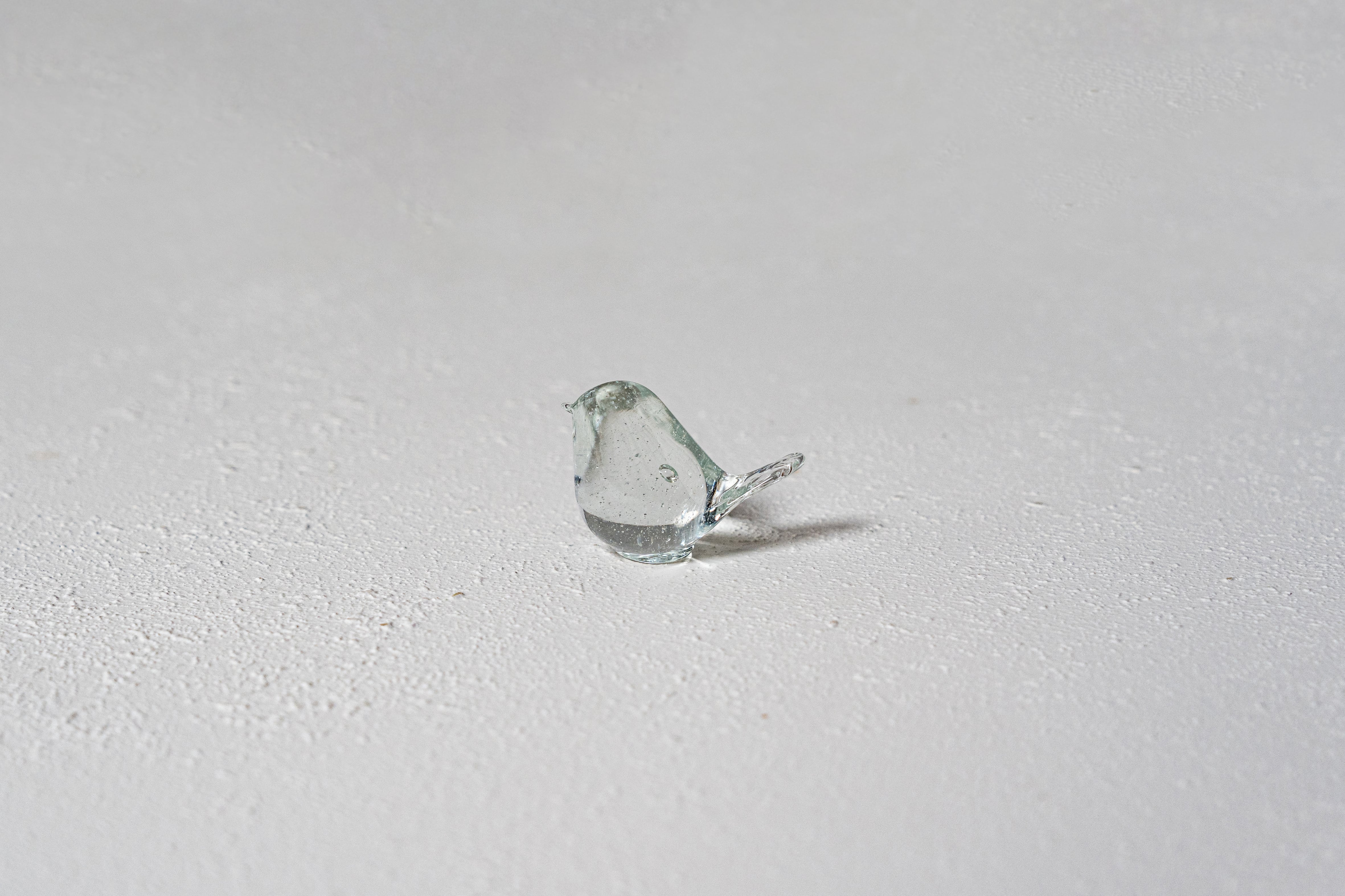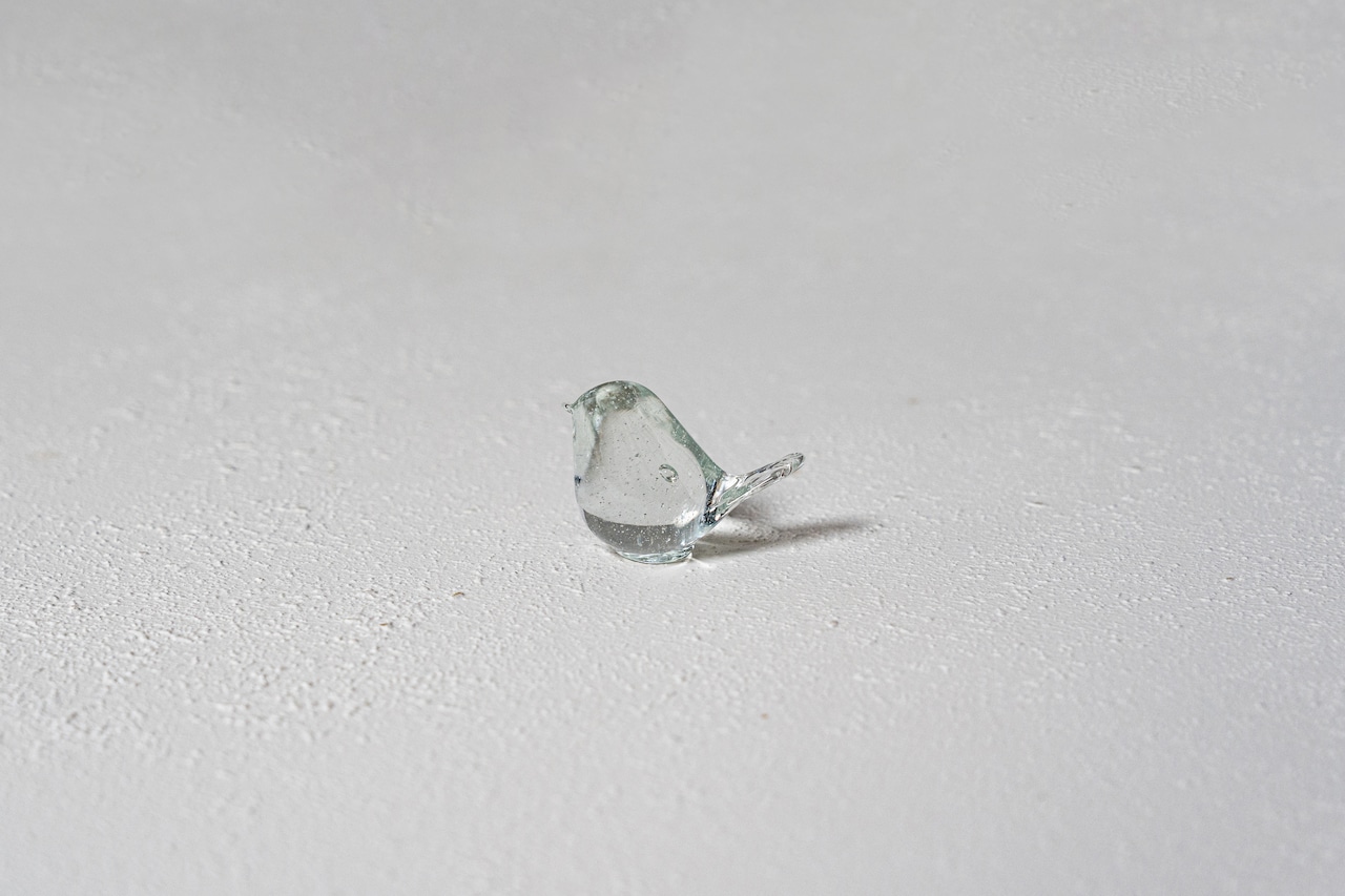 Rebornglass®を使用して吹きガラスの工法により作成した鳥の形の箸置きです。