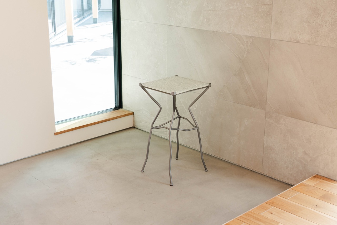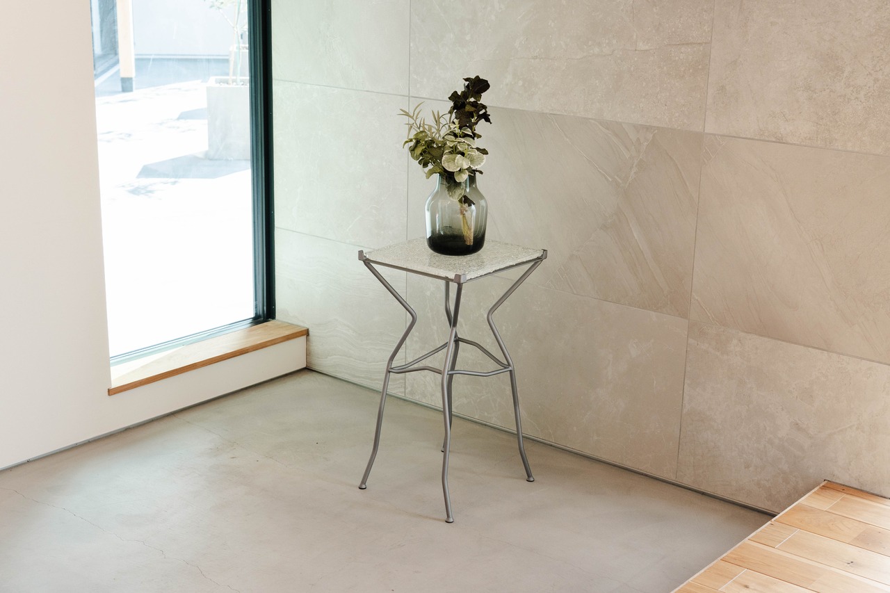 天板にRebornglass®を使用したガラス板を使用したハイテーブルです。